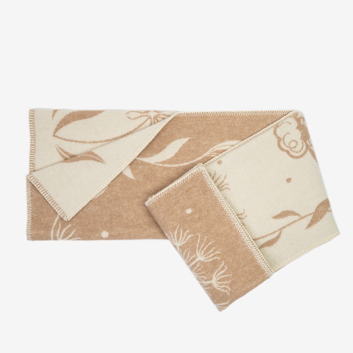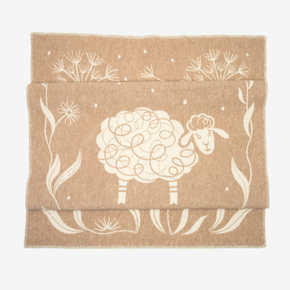 De plaid “Meadow” is geweven van 100% merinowol en brengt overal waar het ligt een gevoel van warmte en rust. De zachte tinten in bruin en ecru vormen een harmonieuze combinatie, terwijl het speelse schapenmotief elke ruimte een vriendelijke uitstraling geeft.