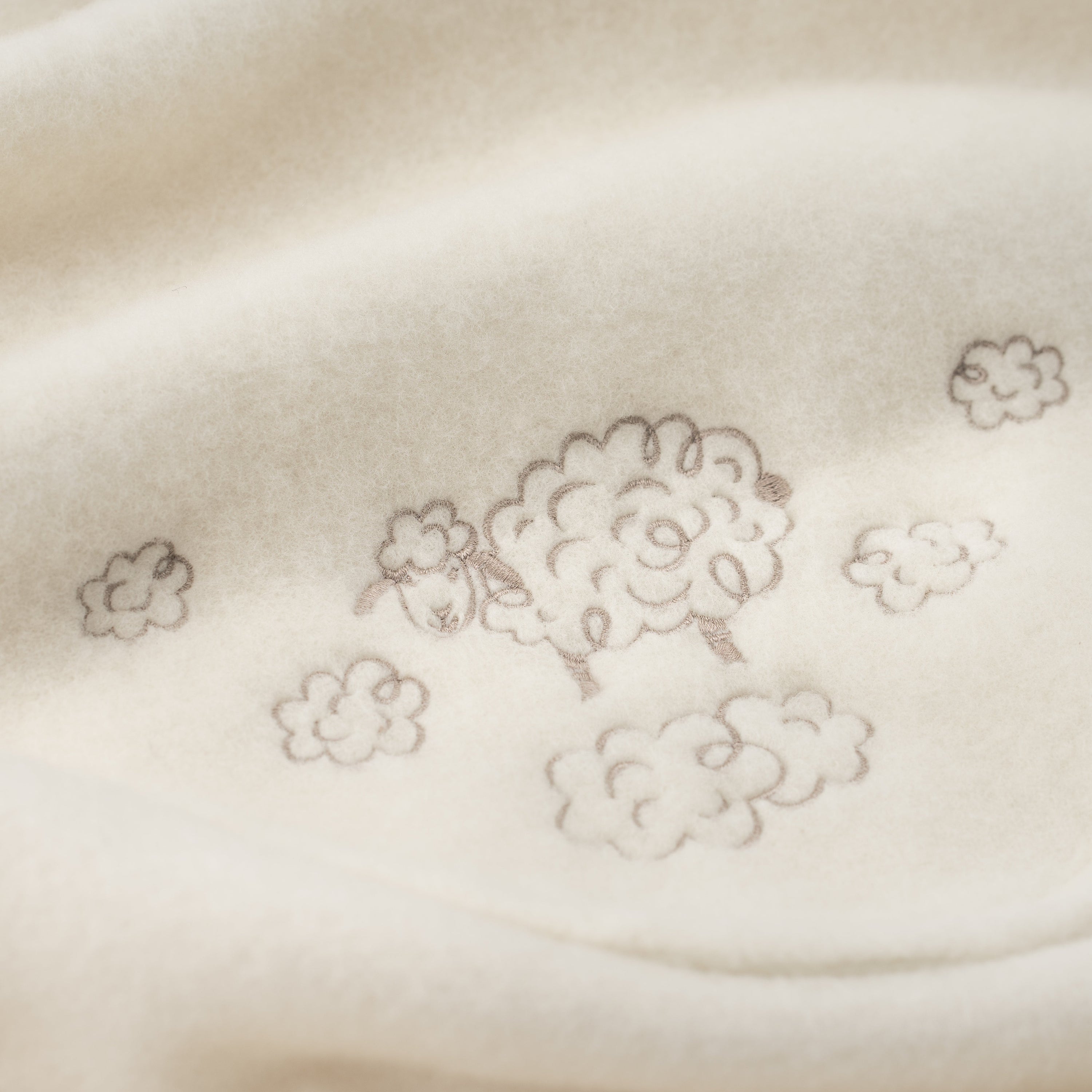 Elke deken wordt in Europa gemaakt van gecertificeerde merinowol. De zachte beigekleur past prachtig in elke babykamer en het kleine geborduurde schaapje geeft een lieve, speelse touch. Perfect voor in het babybedje, de kinderwagen of tijdens knuffelmomenten samen.